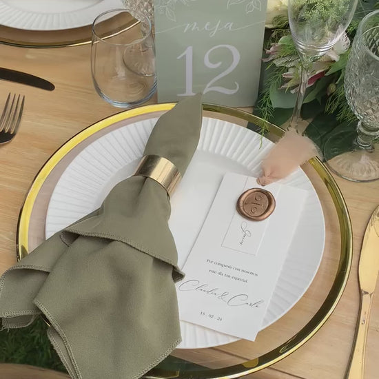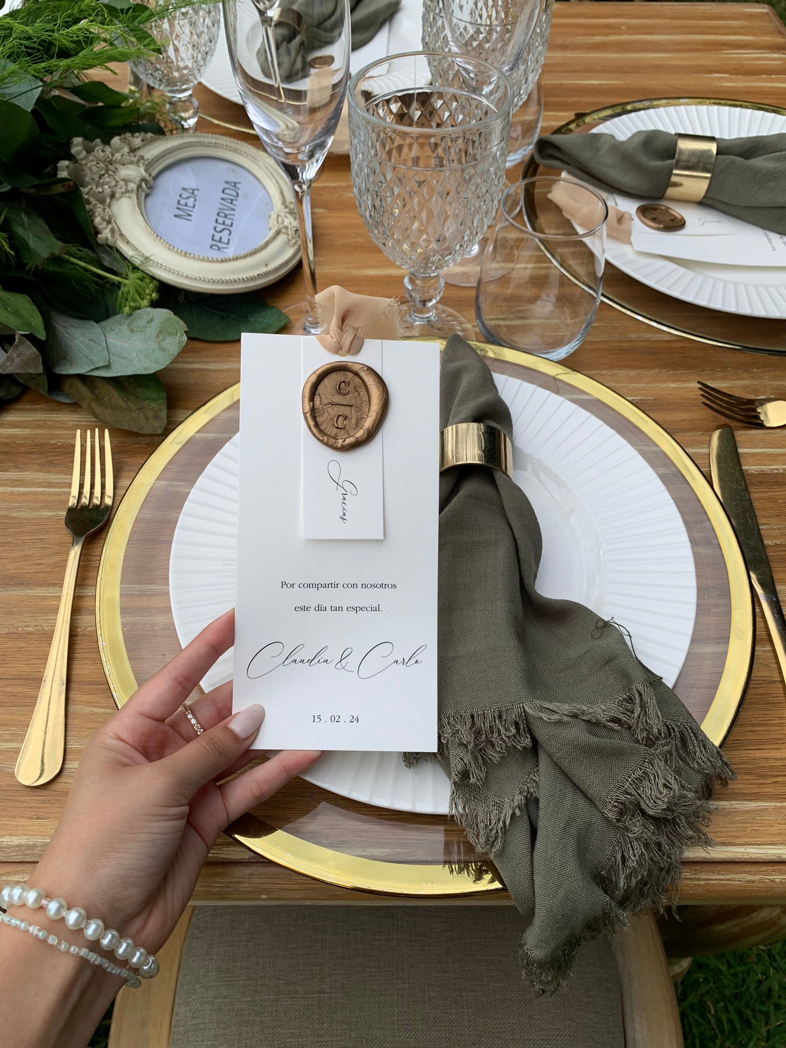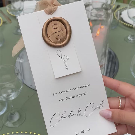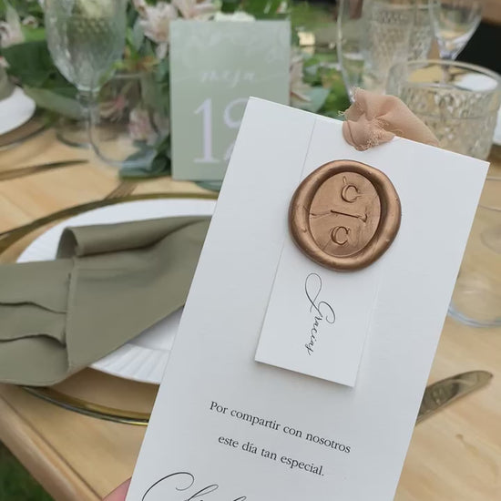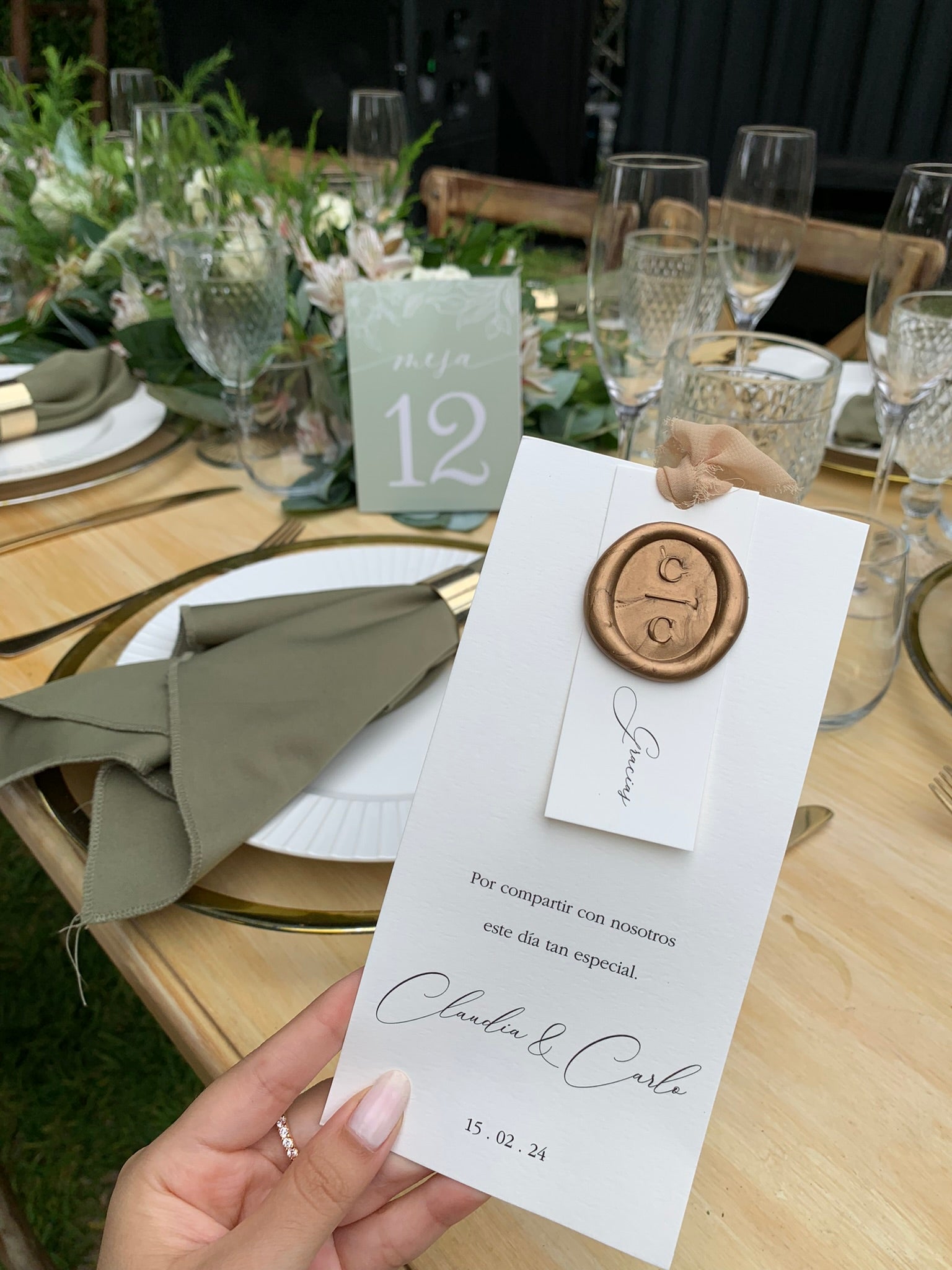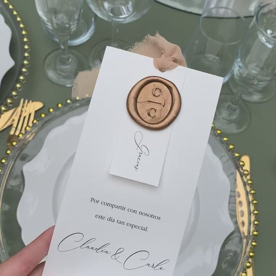 Nuestras tarjetas de agradecimiento con sello de lacre (9x18 cm) están elaboradas en cartulina premium y llevan un acabado artesanal que marca la diferencia: